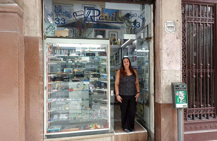 Fundada em 1954, loja especializada em artigos para escrita permanece no mesmo ponto da Avenida São João e é referência no ramo. Helena Vieira (foto) é a segunda geração à frente do empreendimento